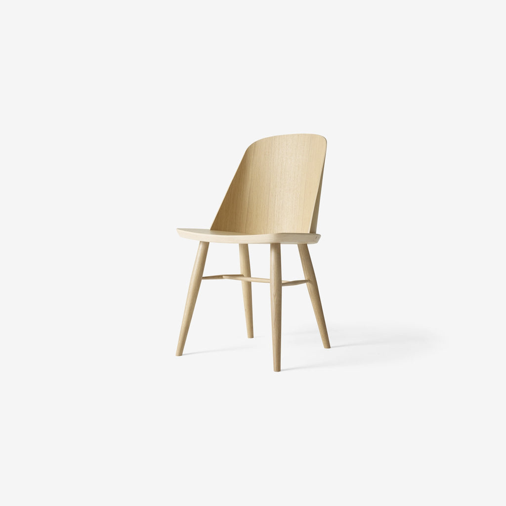 Less is more with Synnes Chair, a distinctively modern take on the classic Scandinavian dining chair from one of the region's most exciting young designers, Falke Svatun. The chair came to life when the Norwegian had the idea of inserting a sheet of plywood into the seat, with a curved backrest to maximize sturdiness. Swappable hard plastic and felt-tipped glides included.
